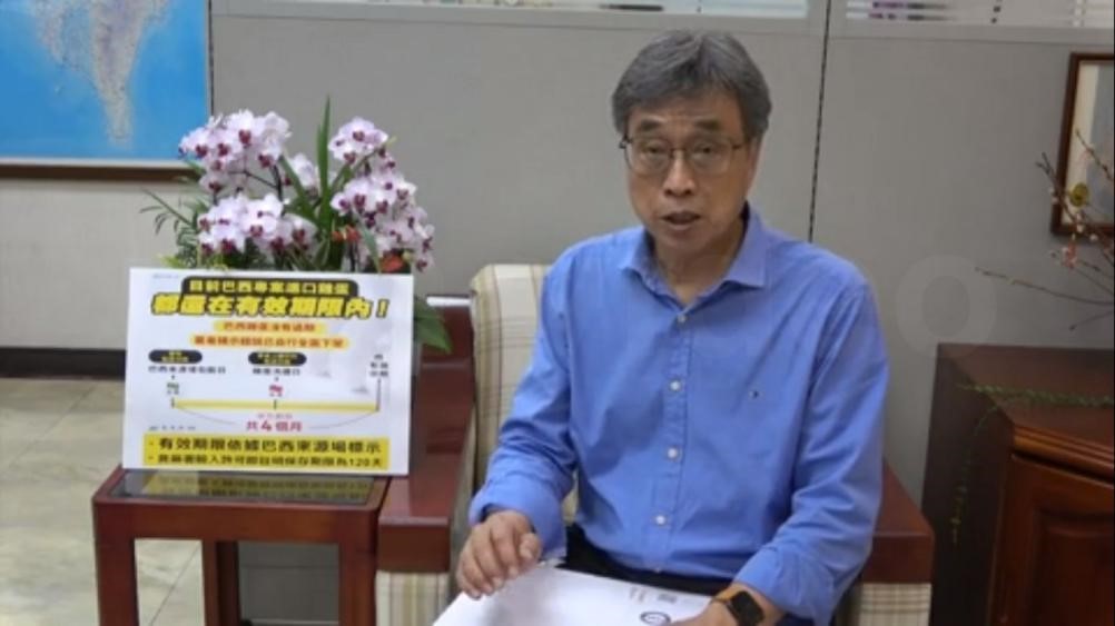 民進黨當局發言:農業部政務次長陳駿季表示,以巴西進口雞蛋來說,有效期限依據巴西來源場標示,經巴西來源場評估運輸過程全程冷 鏈且包裝完整,保存期限是120天,這批雞蛋有效期限是到9月24日至9月27日;現在市面上所有的巴西雞蛋,都是合格安全,在有效期限之內。