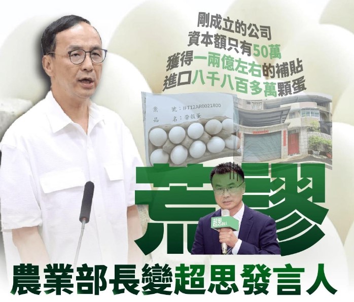 政府為什麼花公帑進口這些蛋,而進口這些蛋補貼合不合理?請問賴清德還是擔任行政院長,可以接受這樣的補貼嗎?有些蛋還補貼到32元,這樣合理嗎?為什麼是這些廠商來進口,一定要向所有民眾做明確的說明,一家剛成立、資本額只有50萬的公司,可以獲得約一、兩億的補貼,又可以進口8800多萬顆的蛋,民眾當然會有質疑。