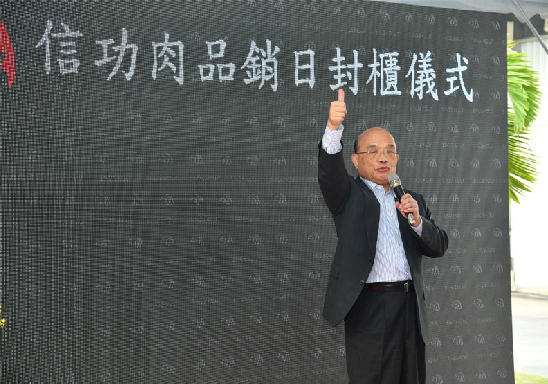 台灣行政院長蘇貞昌稱豬農挺萊豬,在立院答覆國民黨立委蔣萬安質詢時說:「上禮拜我到屏東的信功豬肉,他還是國民黨中常委捏,他很支援欸。 」實際上是,蘇貞昌至信功參與台灣豬肉加工品外銷封櫃儀式,全程並無討論或提及萊豬議題,信功也強調,當時楊博仁不在台灣,並沒有與蘇貞昌接觸或談及任何萊豬立場及議題。 信功也表示,該公司長期經營豬肉外銷事業,歷經1997年口蹄疫疫情,仍堅持醫療級品管,成為台灣唯一可外銷日本、新加坡的豬肉加工品工廠。 信功也使用國內優良豬只,堅持不使用進口美國萊豬,秉持良心製造產品,楊博仁及家人都敢吃,才銷售給社會大眾。