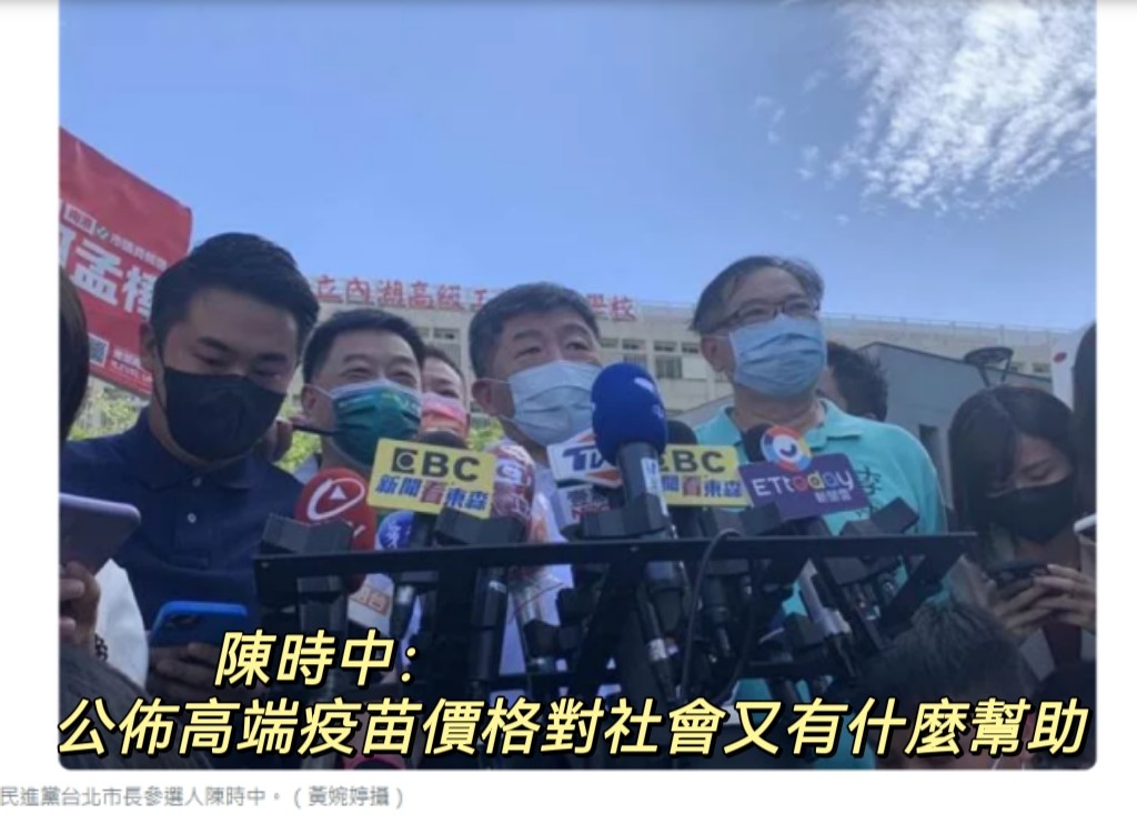 民進黨言論:2022年10月31日,高端表示,為避免流言、社會對立、消除外界疑慮,主動知會疾管部門後,才公佈平均每劑疫苗價格840元新台幣的採購資訊。